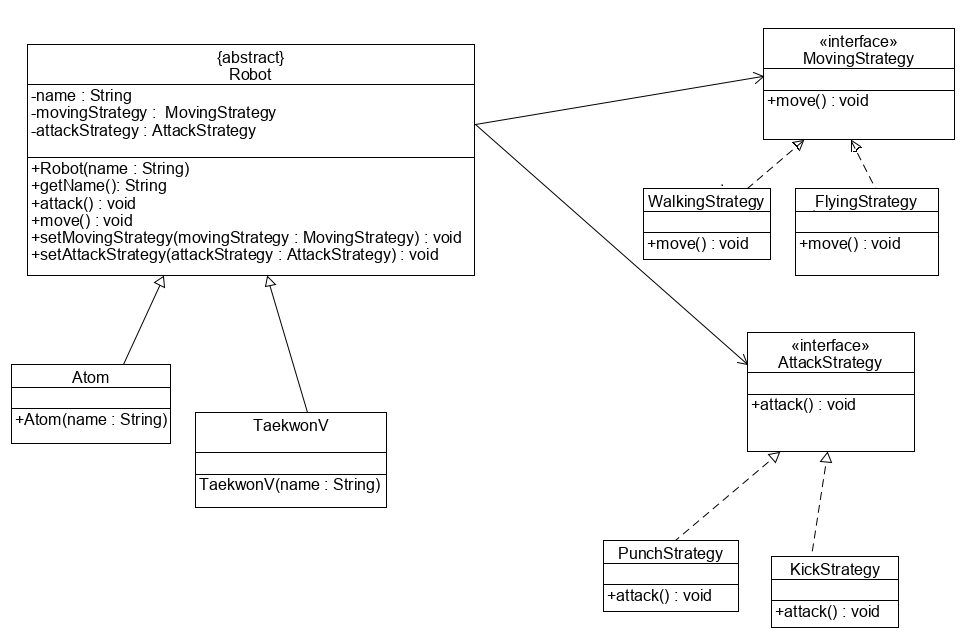 스트레티지 패턴을 이해하기 위해, 로봇들을 만들어보자.