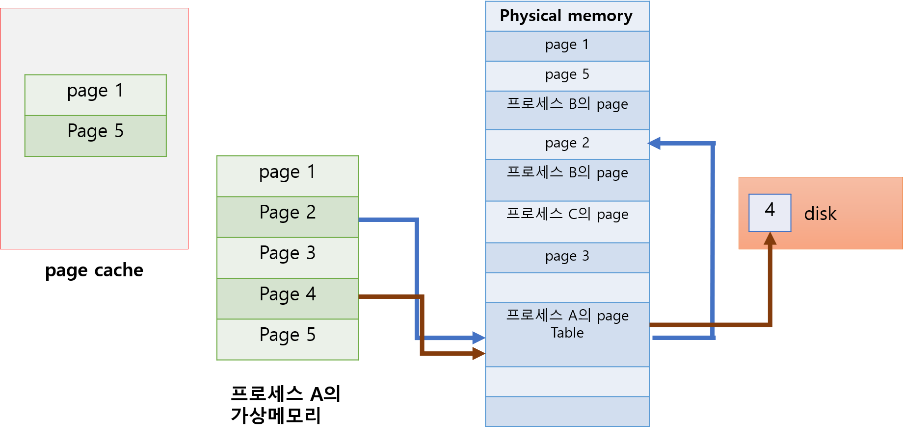자주 사용되는 페이지는 물리 메모리에만 두는게 아니라, 캐시에도 둔다. 그래서 빠르게 해당 페이지에 접근하게 된다.(사실 CPU가 접근하는 영역은 무조건 캐시이다. 캐시에 있는 데이터만 접근한다. 메모리에 접근하려는 데이터가 있다면 캐시에 올린다. 그 후, 캐시에 엑세스한다)