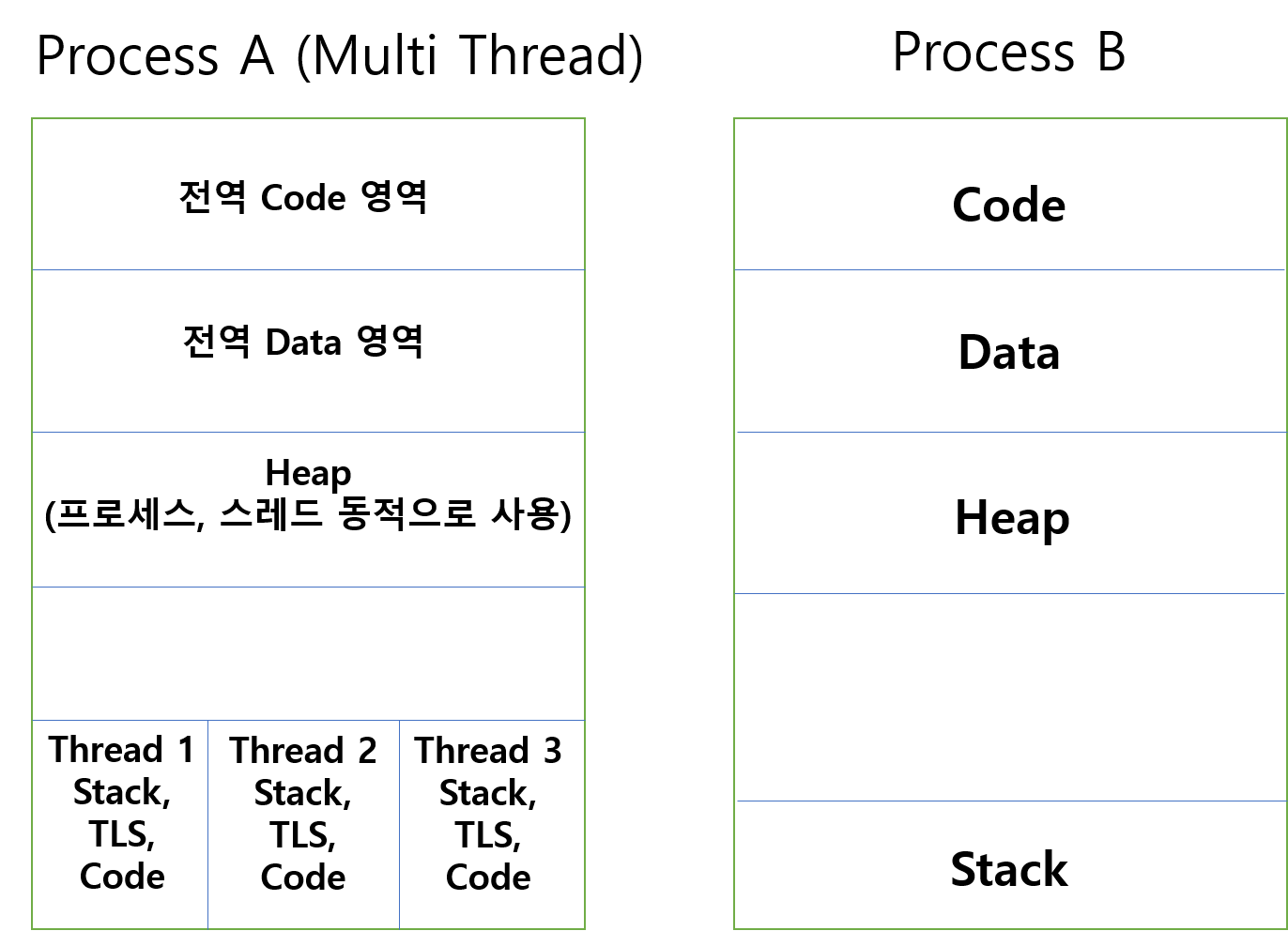 실행 단위에 따른 메모리 구조를 보면 더욱 잘 이해가 간다.