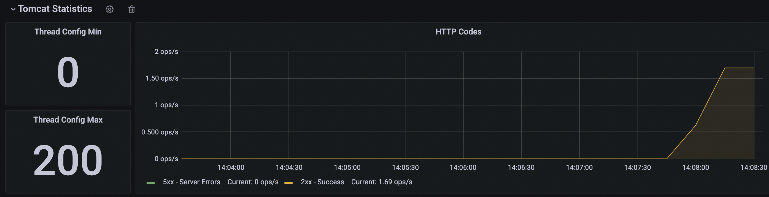 14시 08분에 테스트를 진행하였습니다. Connection Pool이 매우 안정적입니다. API의 상태코드도 모두 200입니다.